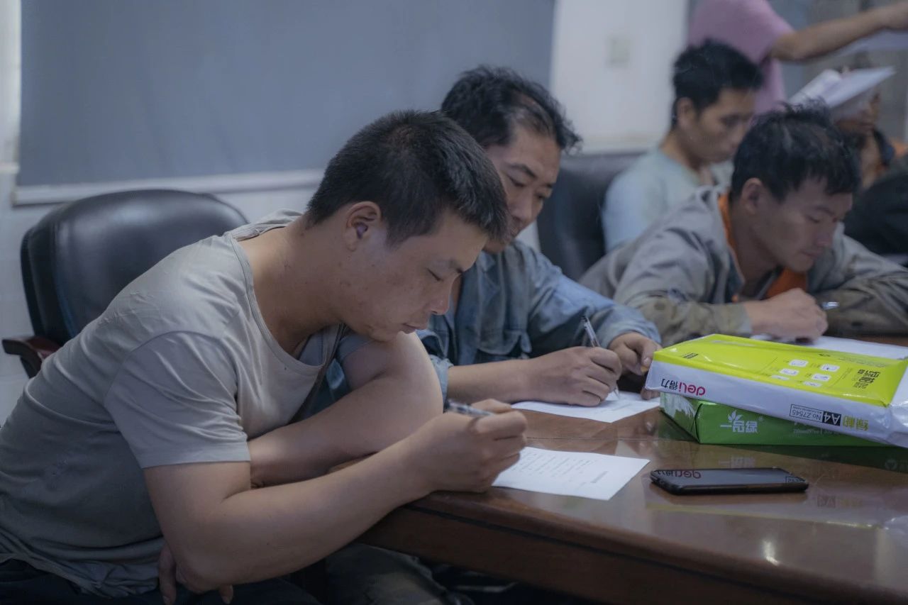 在對行車、有限作業(yè)空間安全操作標準進行細致學(xué)習后,全體參會人員一同觀看安全教育視頻,了解車間作業(yè)中發(fā)生的真實事故,以及事故帶來的人員財產(chǎn)傷害。安全生產(chǎn)教育培訓(xùn)的環(huán)節(jié),車間工人進行行車安全知識培訓(xùn)考試。安環(huán)委主任表示,他希望通過現(xiàn)場筆試這一方式,檢驗大家此次培訓(xùn)掌握情況,同時進一步加深鞏固安全知識。