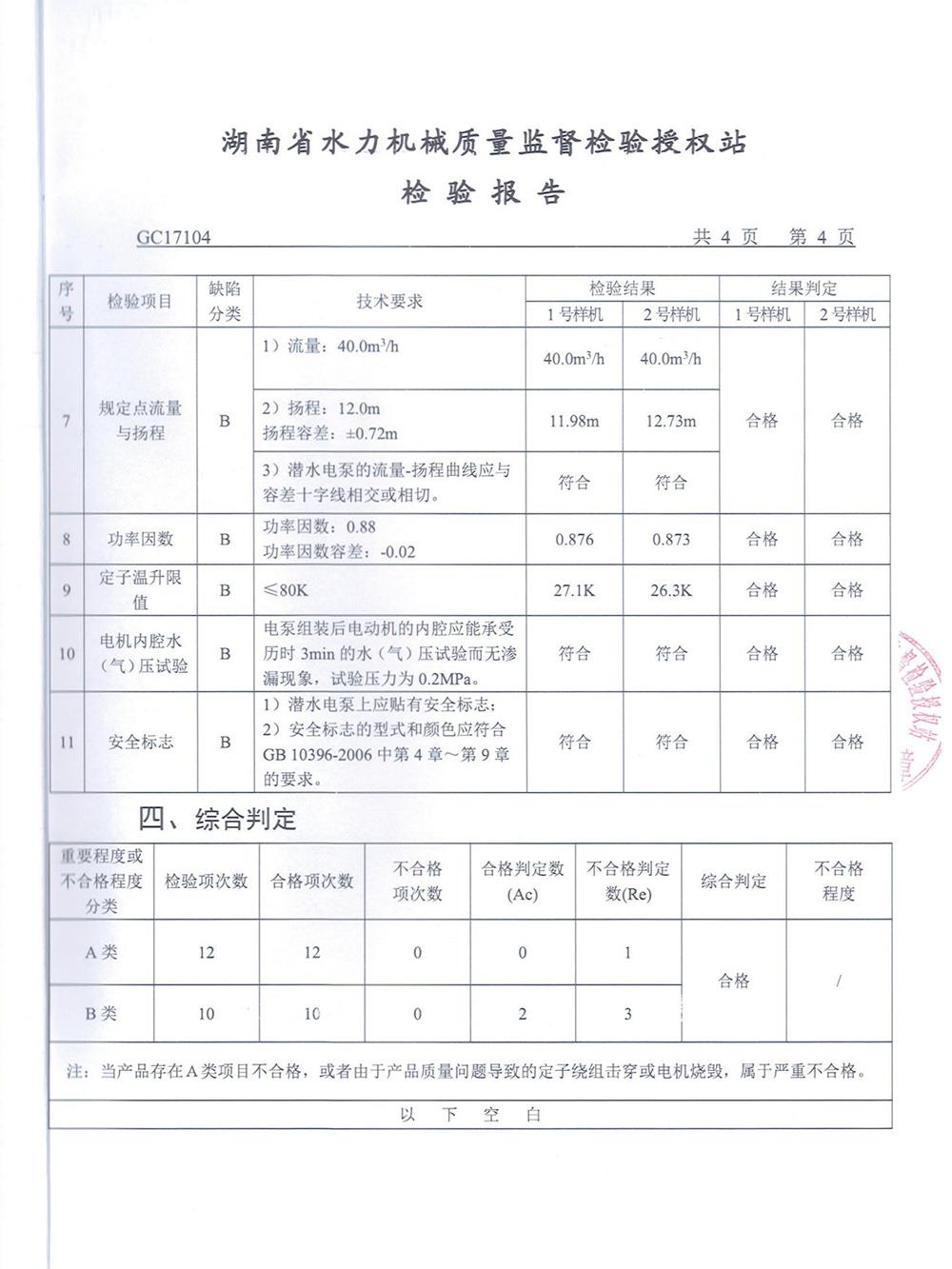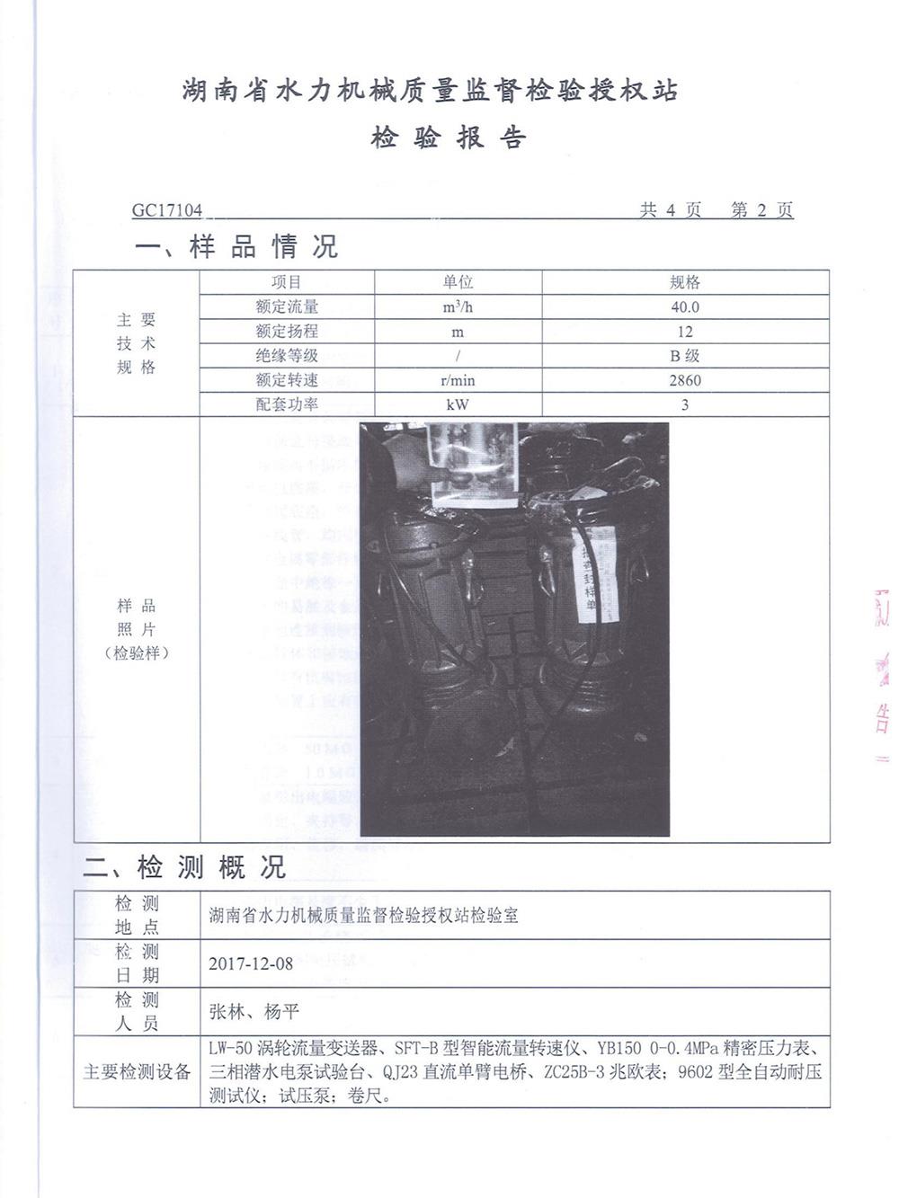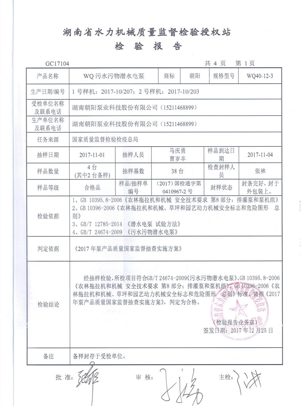 WQ污水污物潛水電泵檢測報告